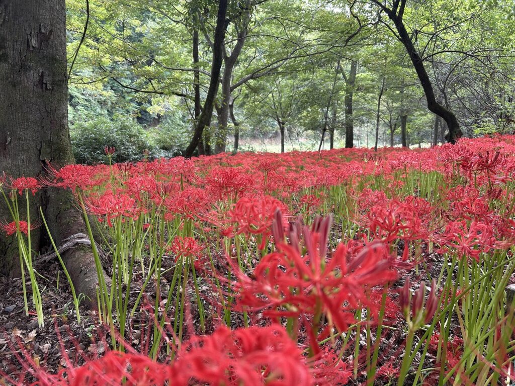 日高市巾着田の秋の風物詩、曼殊沙華の花が咲き始めました。