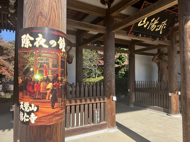 明日からは12月。除夜の鐘の案内が貼ってある。